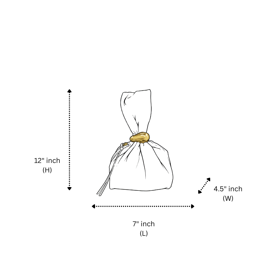 A soft leather wristlet pouch finished with a sculptural gold accent, blending relaxed elegance with refined detail.
